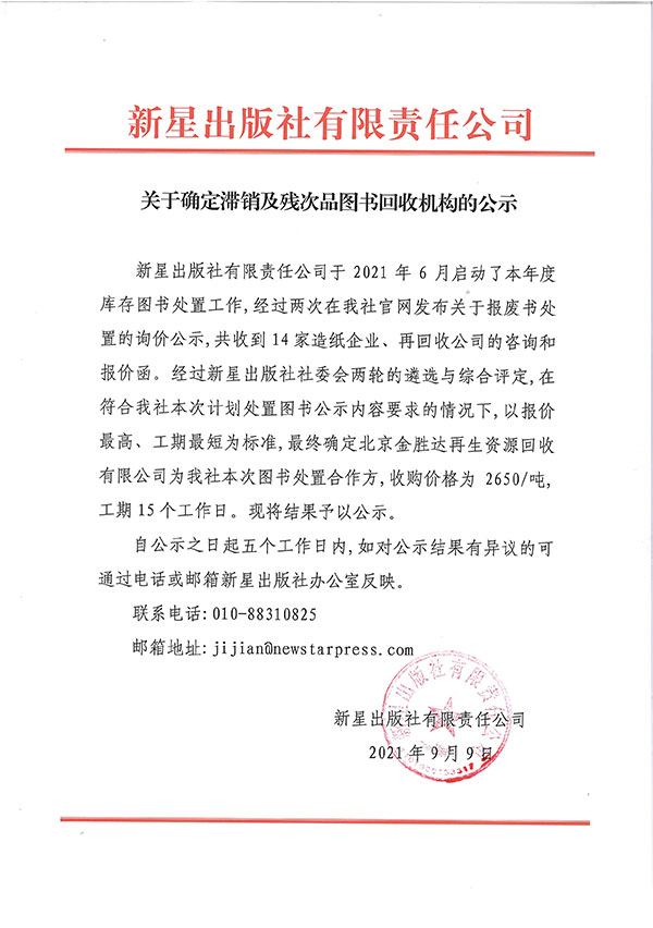 關于確定滯銷及殘次品圖書回收機構的公示